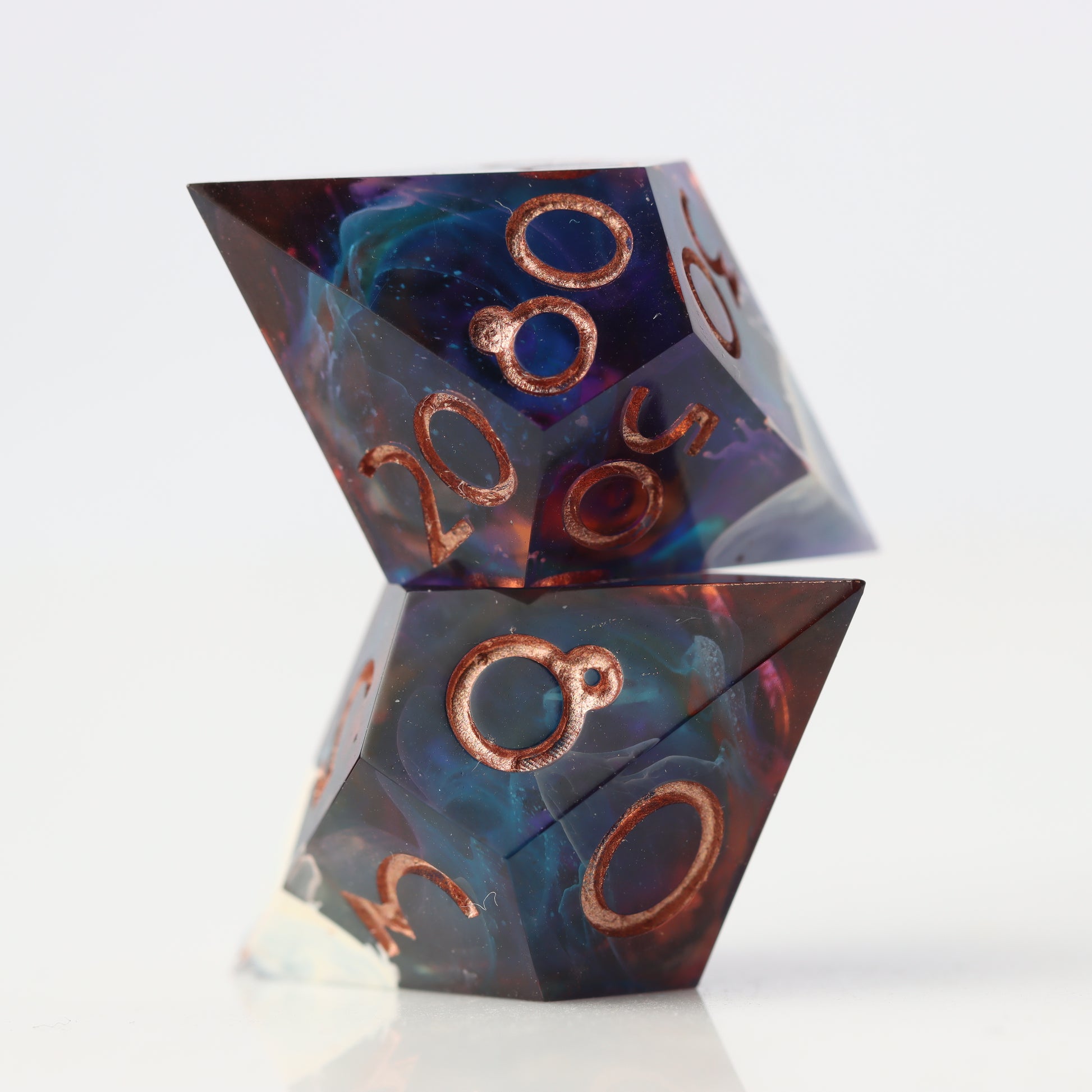 Please be aware that all Fractal Gems dice are handmade and therefore may contain some small imperfections and flaws from the crafting process. These may include micro-scratches, microbubbles, mold marks, painting errors, or other small imperfections. Any major flaws will be listed and photographed (where possible) below and the product is priced accordingly. While we do our best to ensure these flaws are minimal, please bear this in mind before purchasing.
