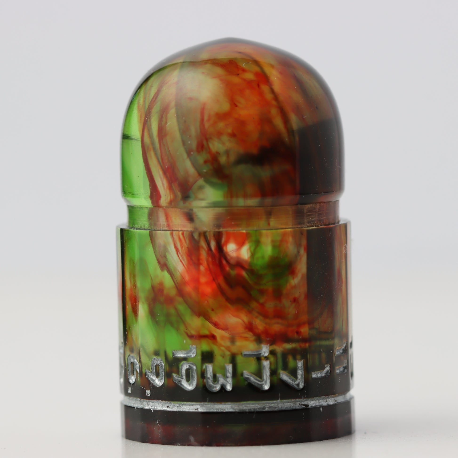Waves of red and black swirl throughout this clear and fluorescent green Arsenal set, like a mix of human blood, and Alien blood in water.
