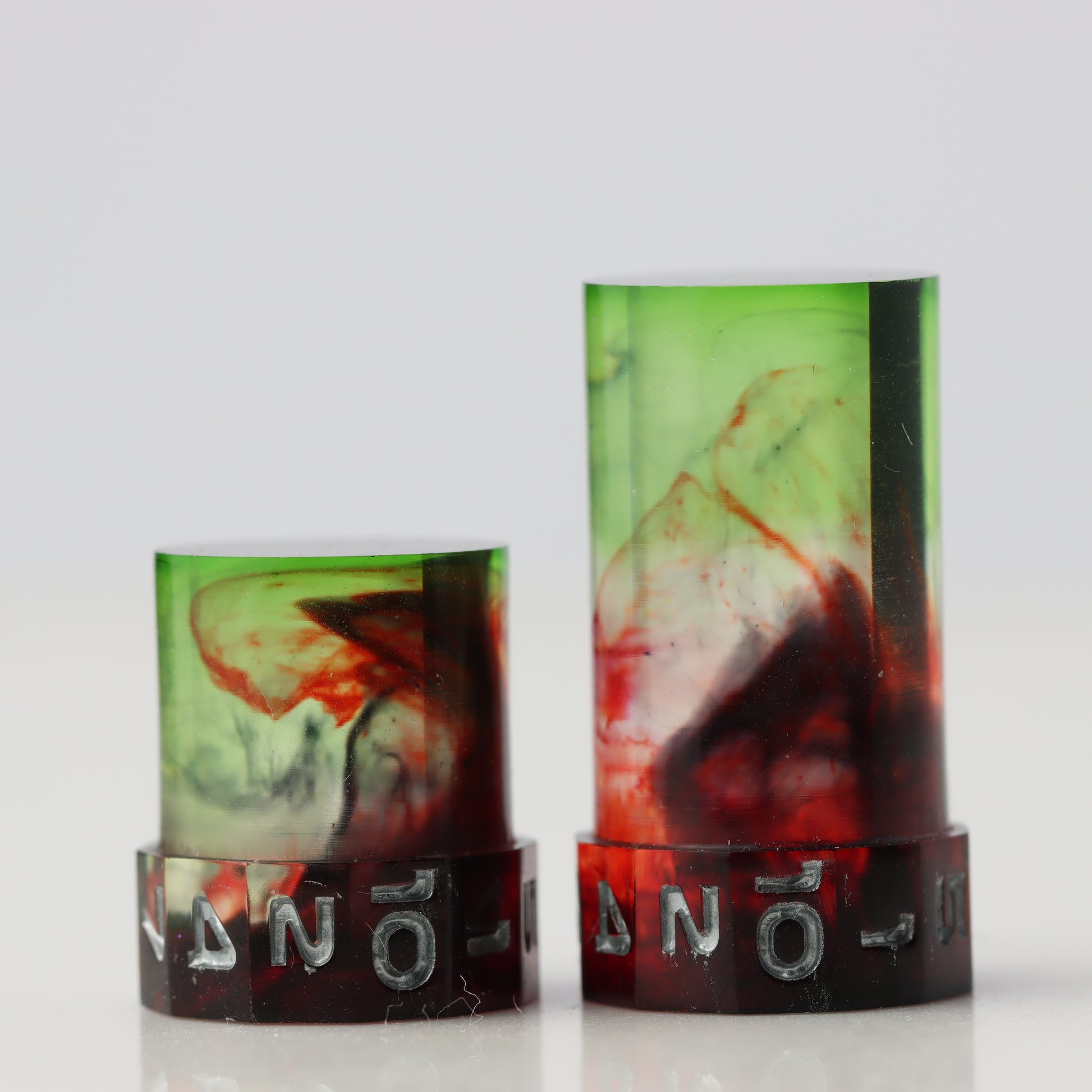 Please be aware that all Fractal Gems dice are handmade and therefore may contain some small imperfections and flaws from the crafting process. These may include microscratches, microbubbles, mold marks, painting errors or other small imperfections. Any major flaws will be listed and photographed (where possible) below and the product is priced accordingly. Whilst we do our best to ensure these flaws are minimal, please bear this mind for prior to purchasing.