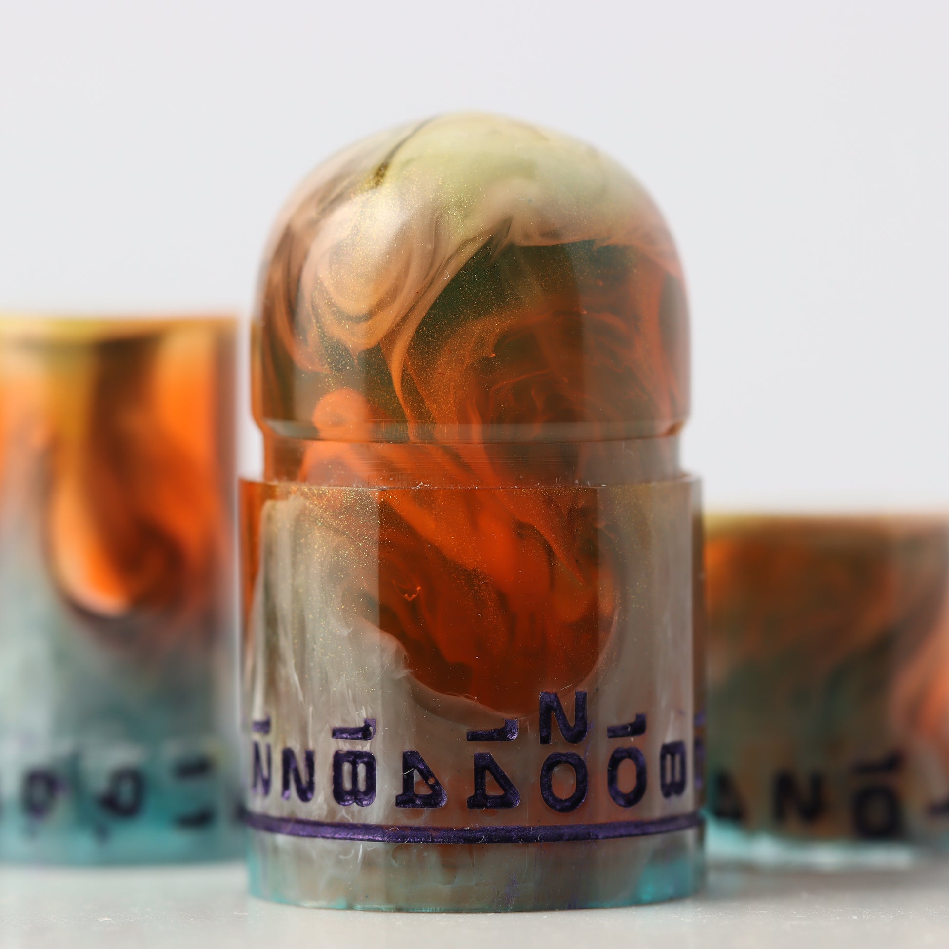 Please be aware that all Fractal Gems dice are handmade and therefore may contain some small imperfections and flaws from the crafting process. These may include microscratches, microbubbles, mold marks, painting errors or other small imperfections. Any major flaws will be listed and photographed (where possible) below and the product is priced accordingly. Whilst we do our best to ensure these flaws are minimal, please bear this mind for prior to purchasing.
